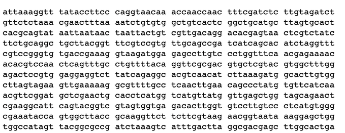 Esta formado por 30.000 "letras" (traducidas a ADN) tal que así: