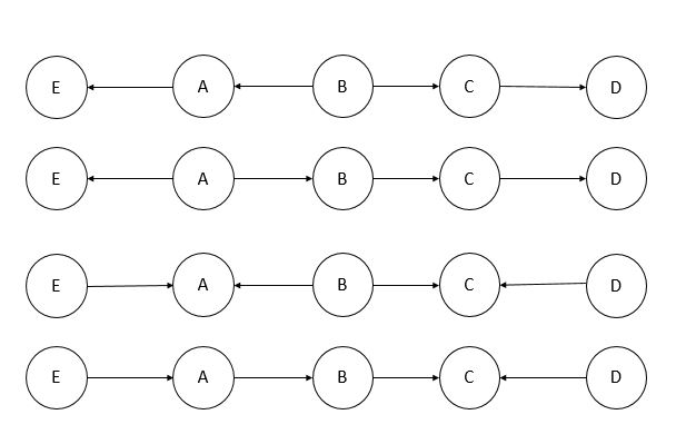 Falsa Quedaría bloqueado D-B-A-C-E pero activo D-B-C-E