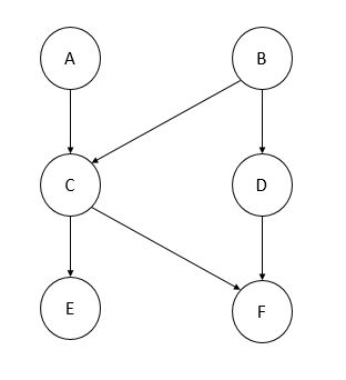C activa el camino entre A y D y por lo tanto, existe un camino entre A-C-B-D. Otra posibilidad no habilitada seria A-C-F-D que en el Nodo F no esta activo.